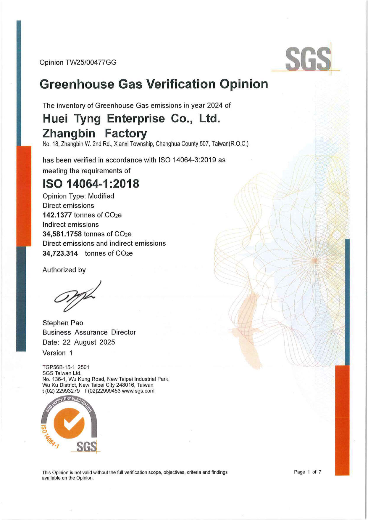 2025ISO 14064 温室効果ガス排出基準の認証を取得しています。