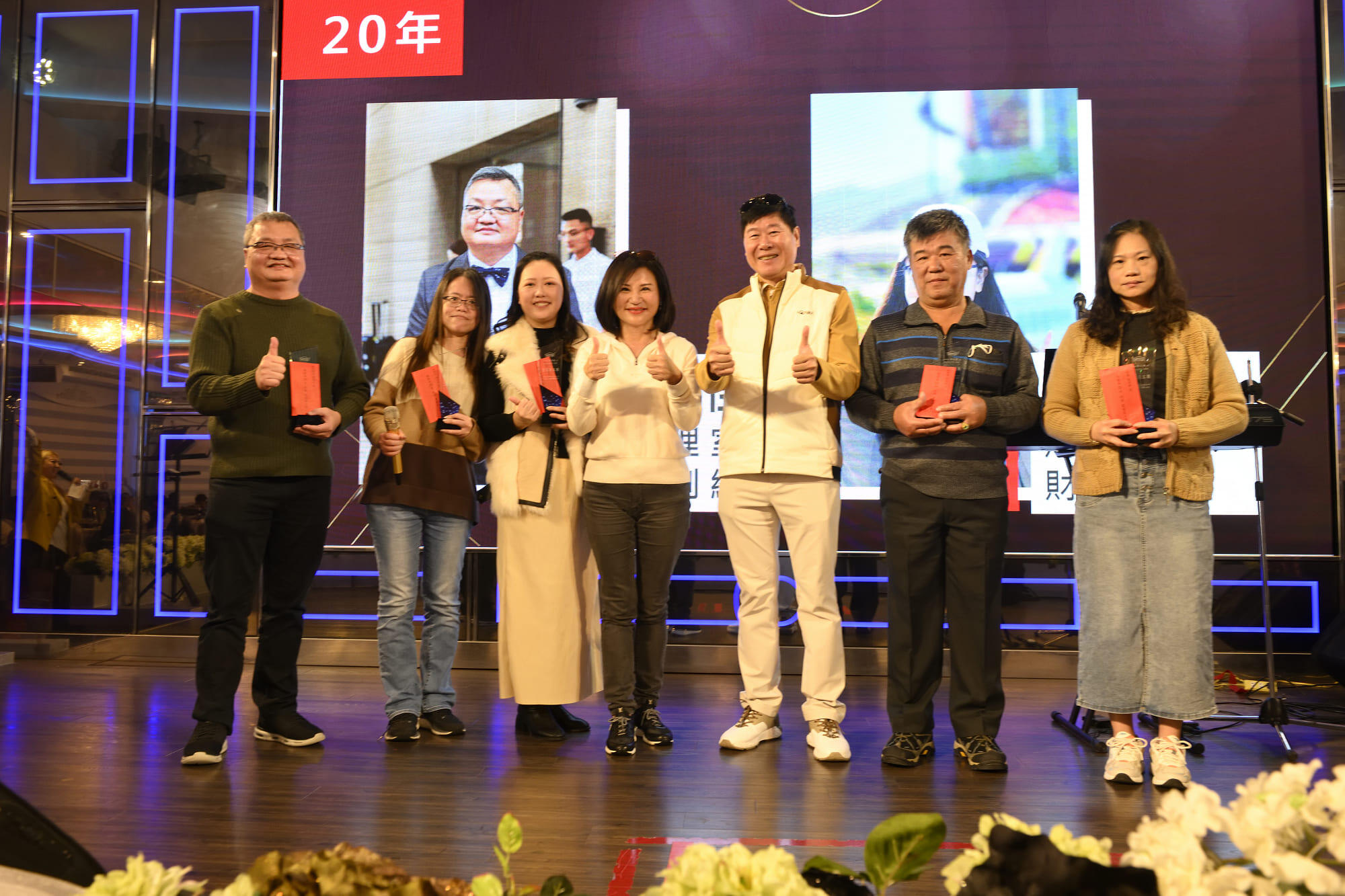 特筆すべきは、今年9名の社員が長年勤続表彰(10年、20年、25年)を受賞し、記念の盾と賞金が贈られたことです。蔡董事長と林副董事長は、この特別な日に、私たちが過去一年間の努力と成果を振り返るだけでなく、長年にわたり会社に尽力し、職務を守り続けてきたベテラン社員たちに敬意を表したいと述べました。どんなに小さなことでも、その一つ一つの努力が私たちにとって大切であり、感謝すべきことだと強調しました。